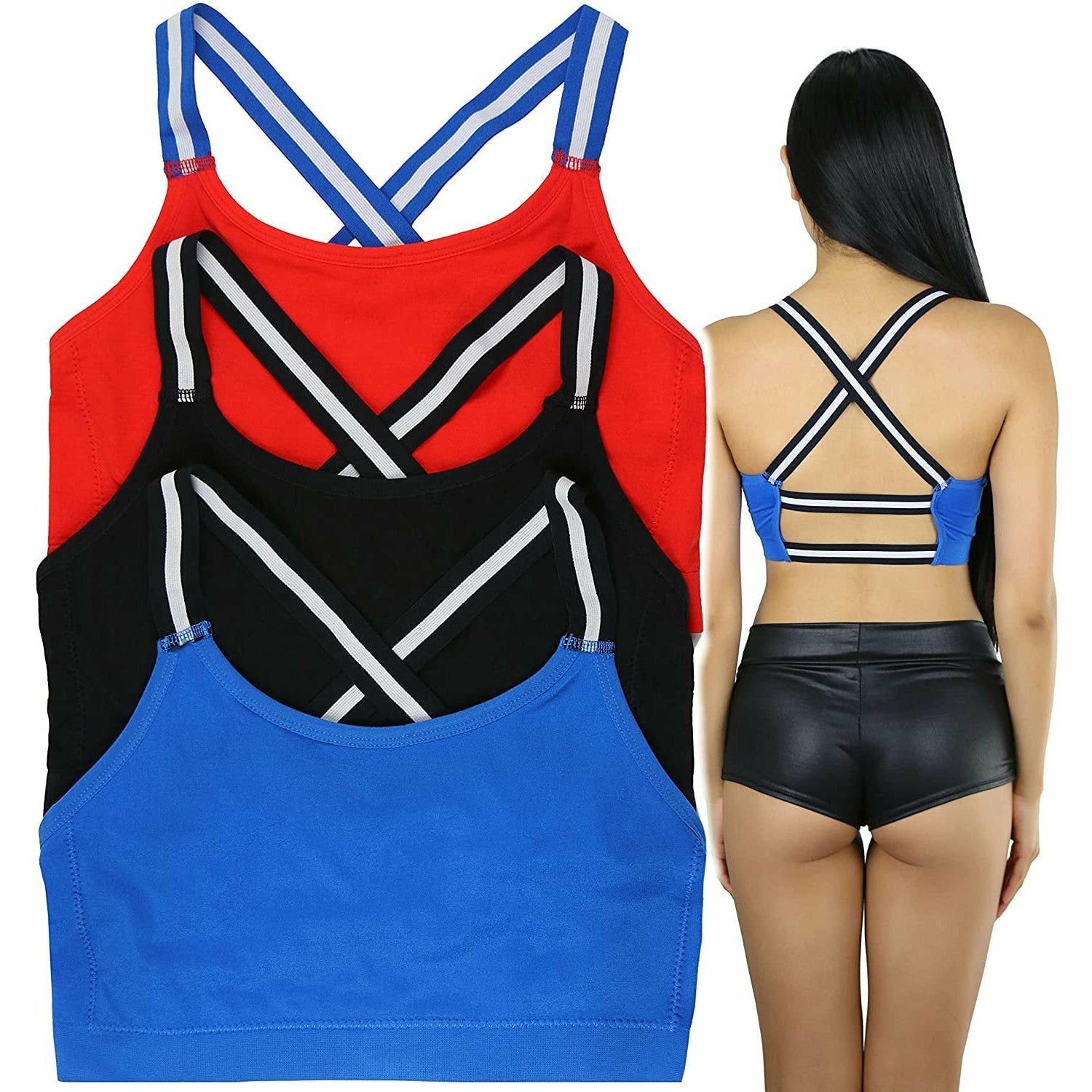 ToBeInStyle Women's Pack of 3 Seamless Strappy Back Bralettes
