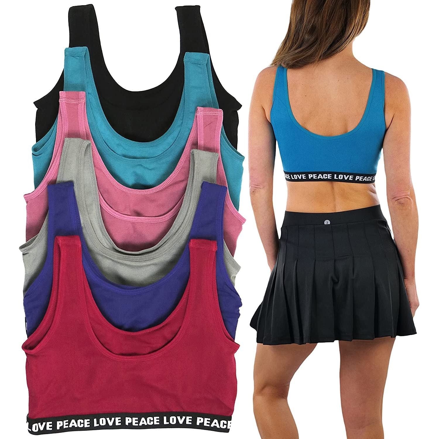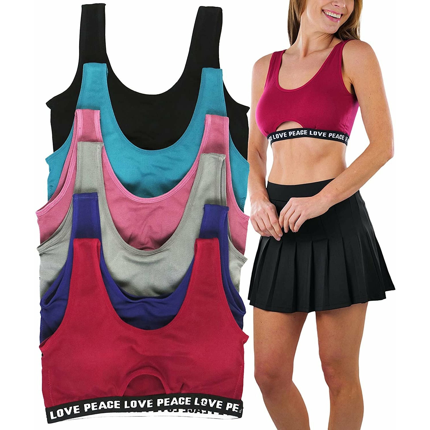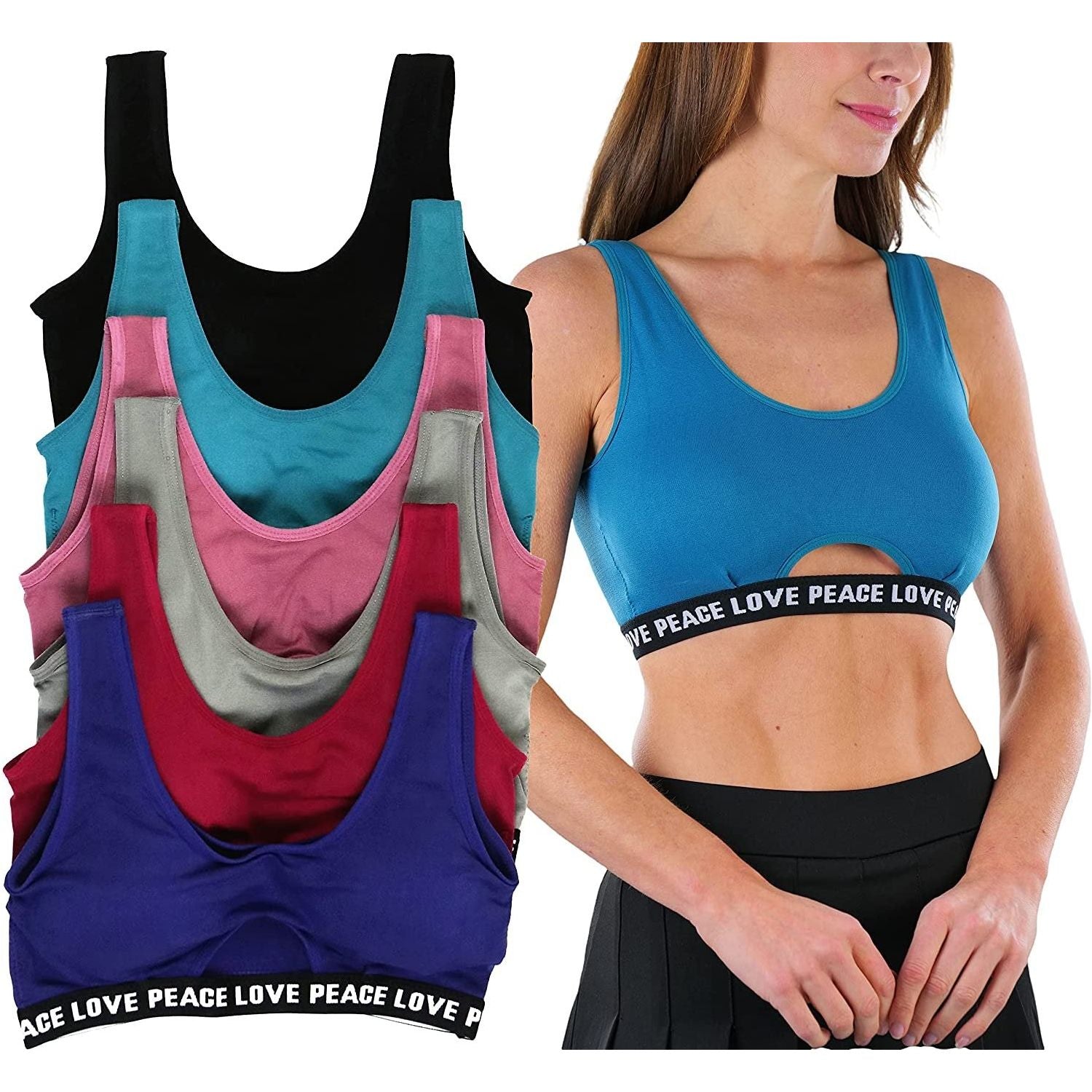 ToBeInStyle Women's Pack of 6 Seamless Peace Love Assortment Lounging Bra with Cut Out Middle