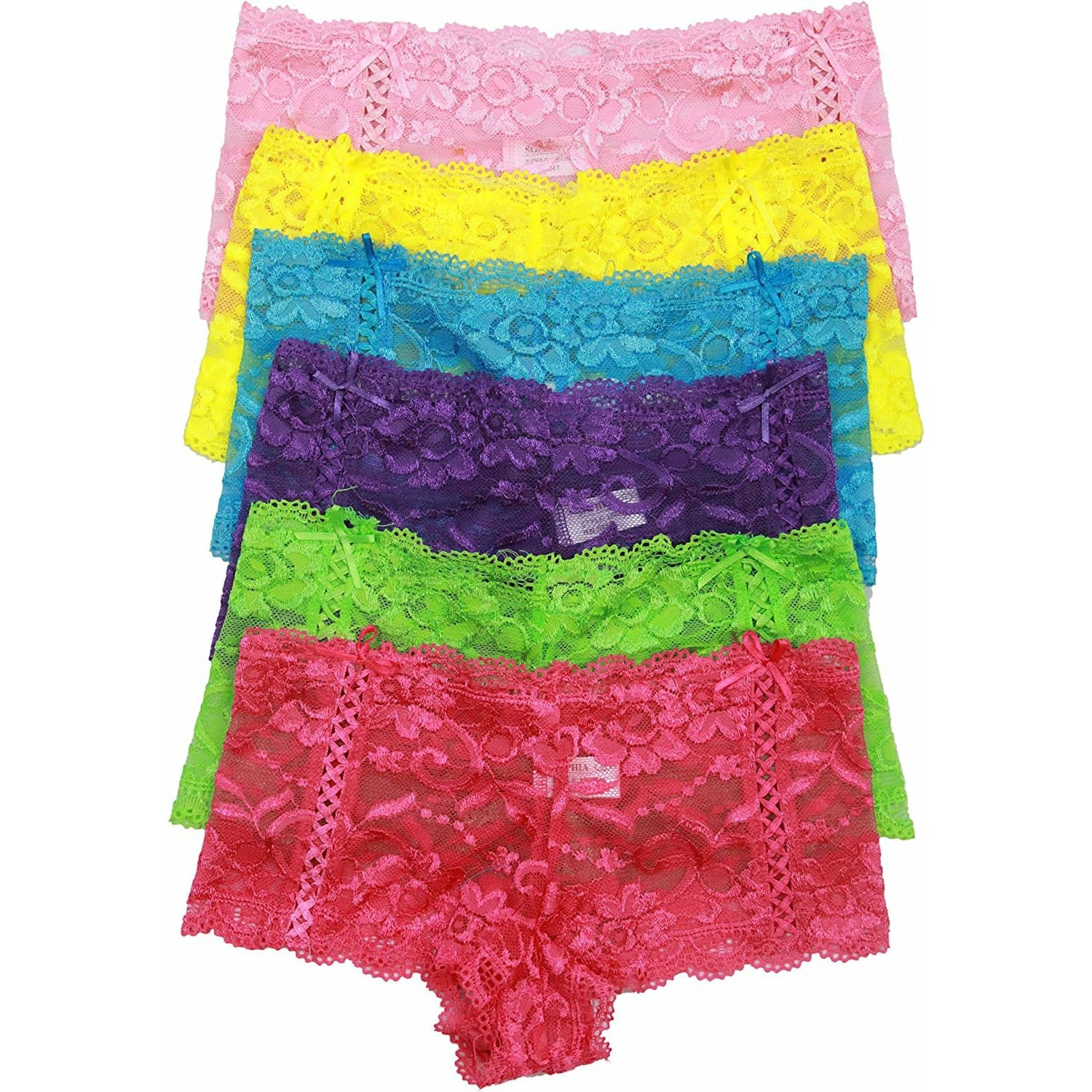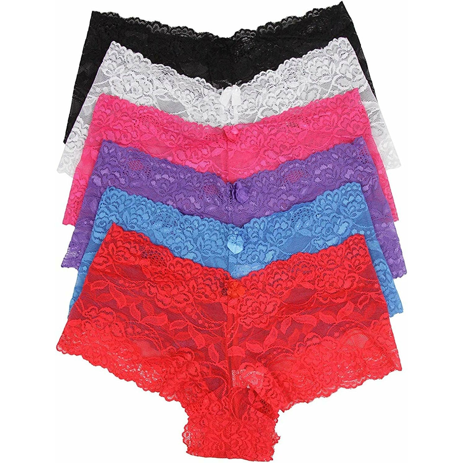 ToBeInStyle Women's 6 Pack Sheer Lace Cheeky Hipster Panties