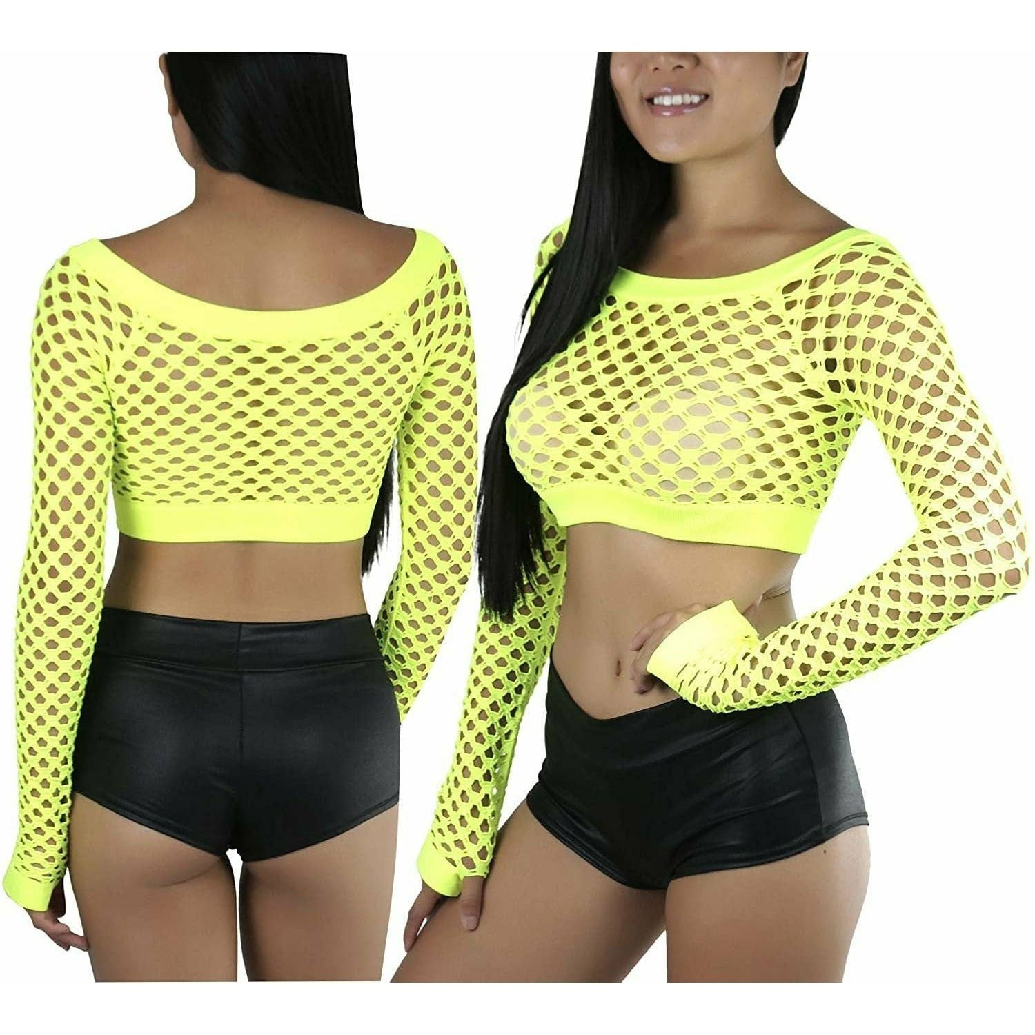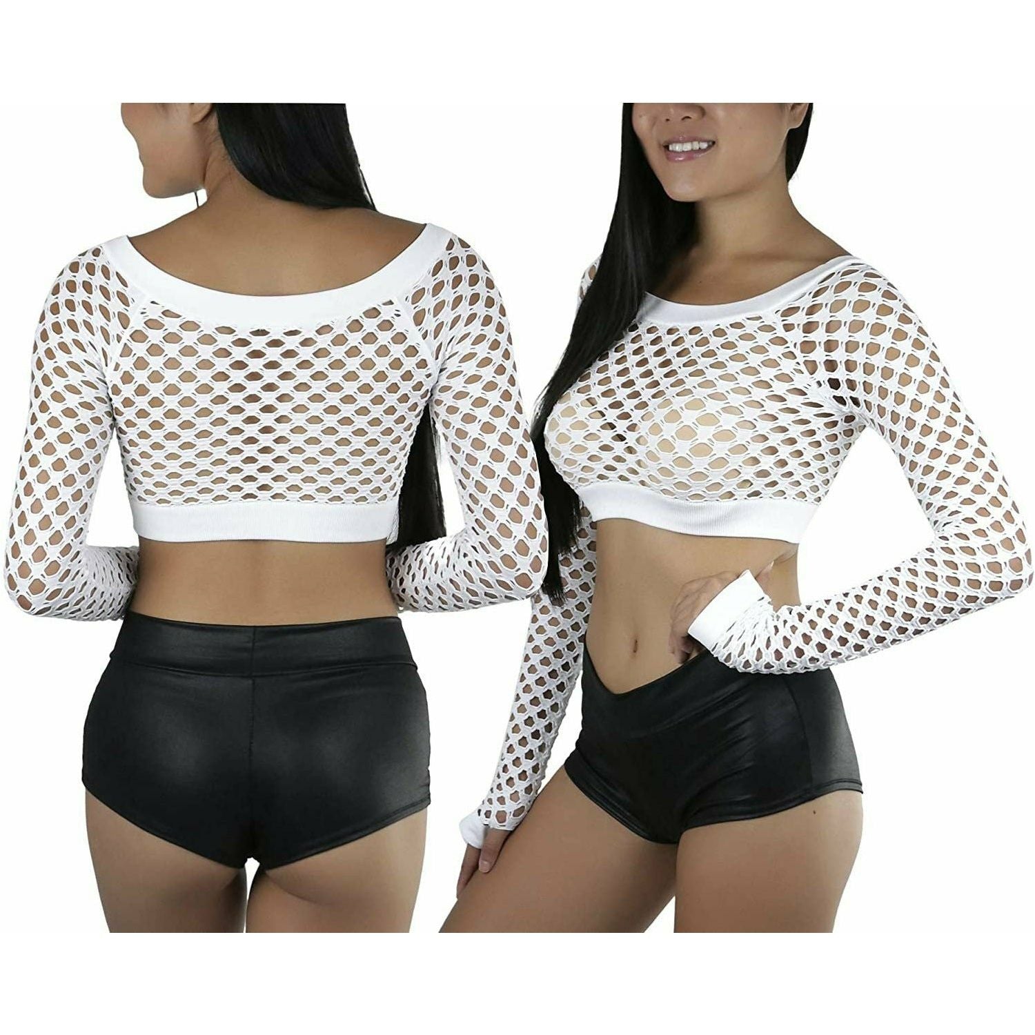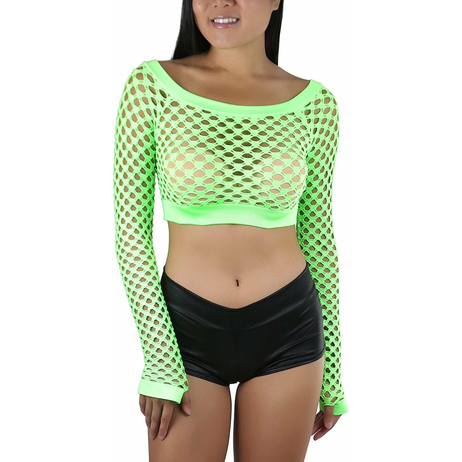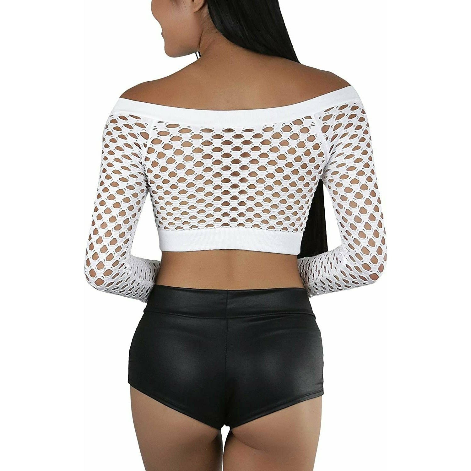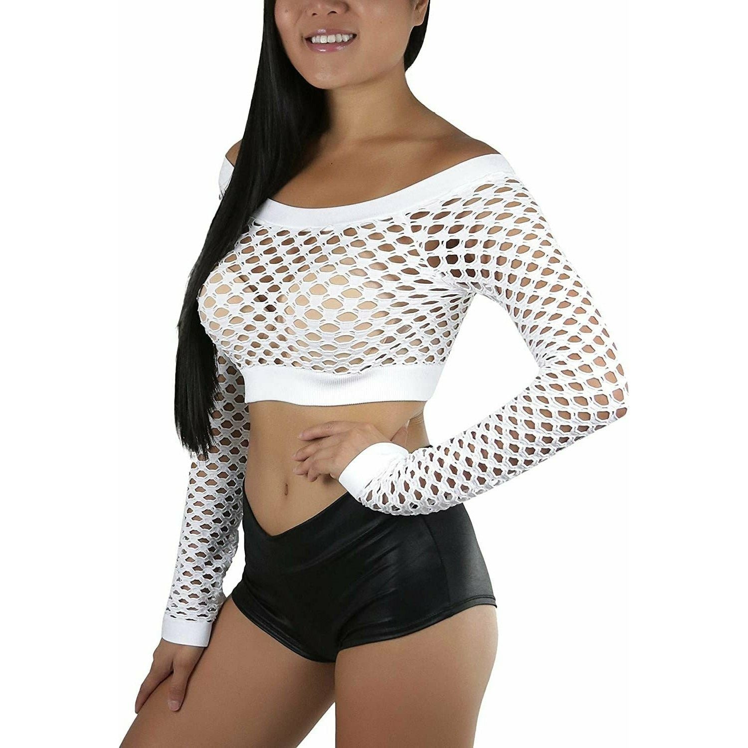 - 💕 Featuring: A crop top, long sleeve overall construction. Made of interweaving cross netted patterns, giving you a blend of skin and fabric. Can be worn both on and off shoulder. Comes in a variety of colors, both vibrant and subdued, for easy styling. Has four way stretch fabric for a comfortable fit.