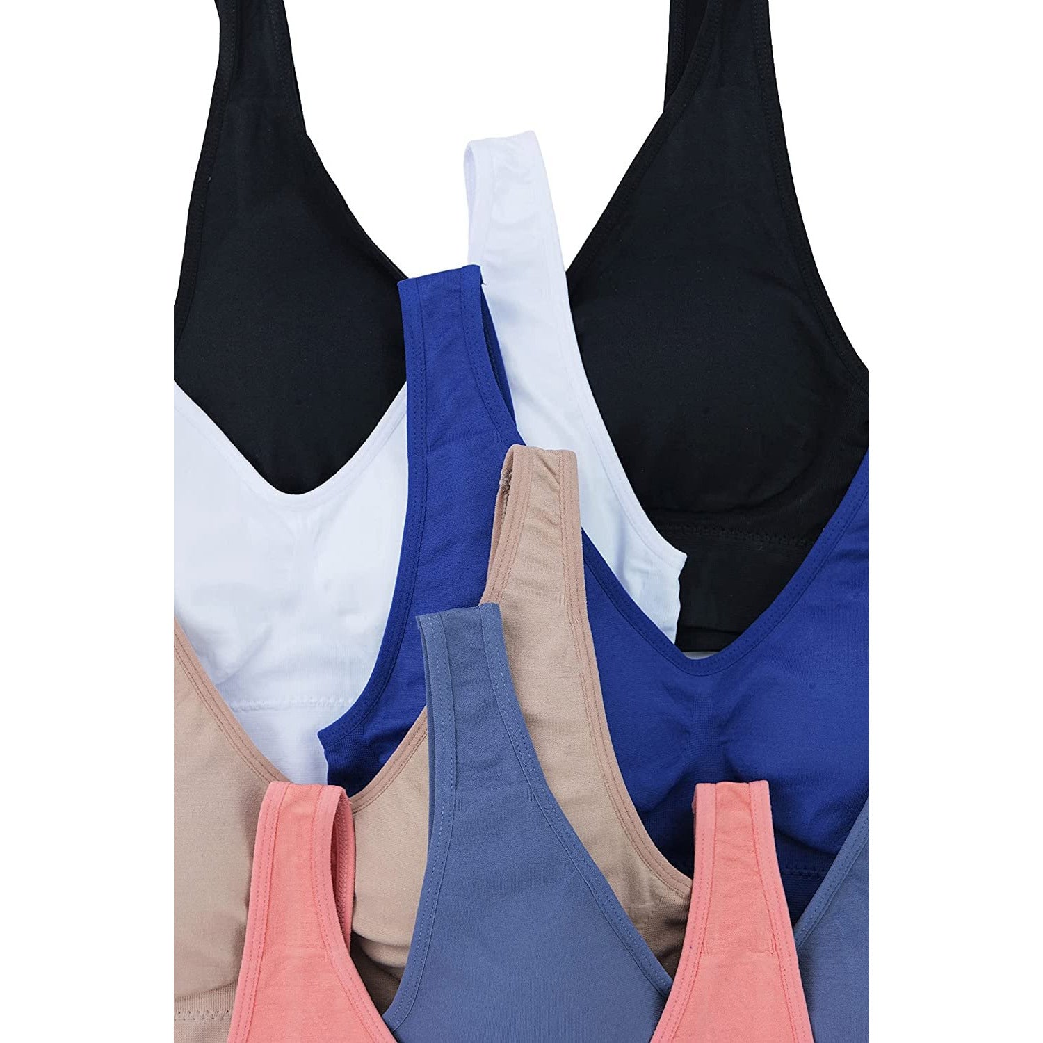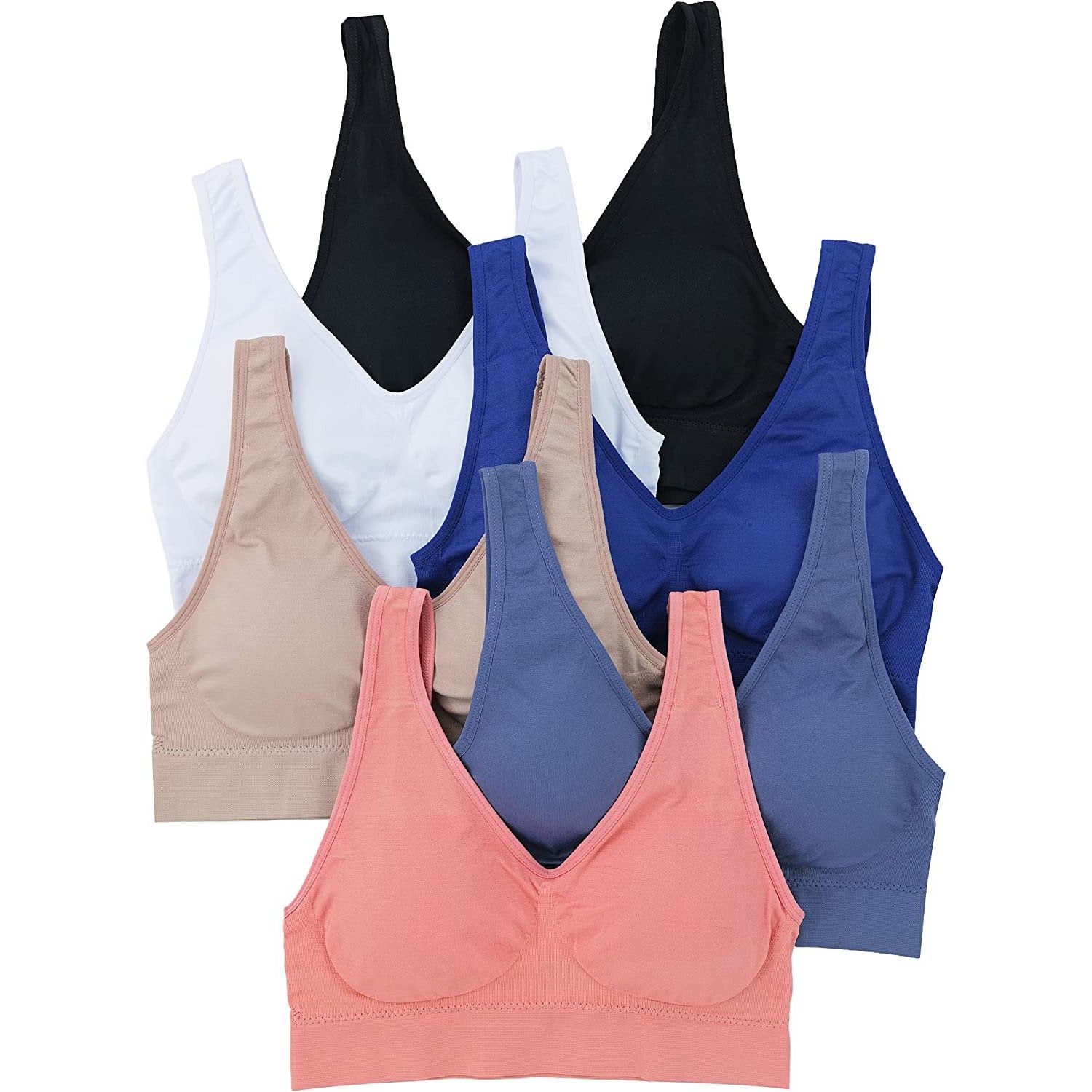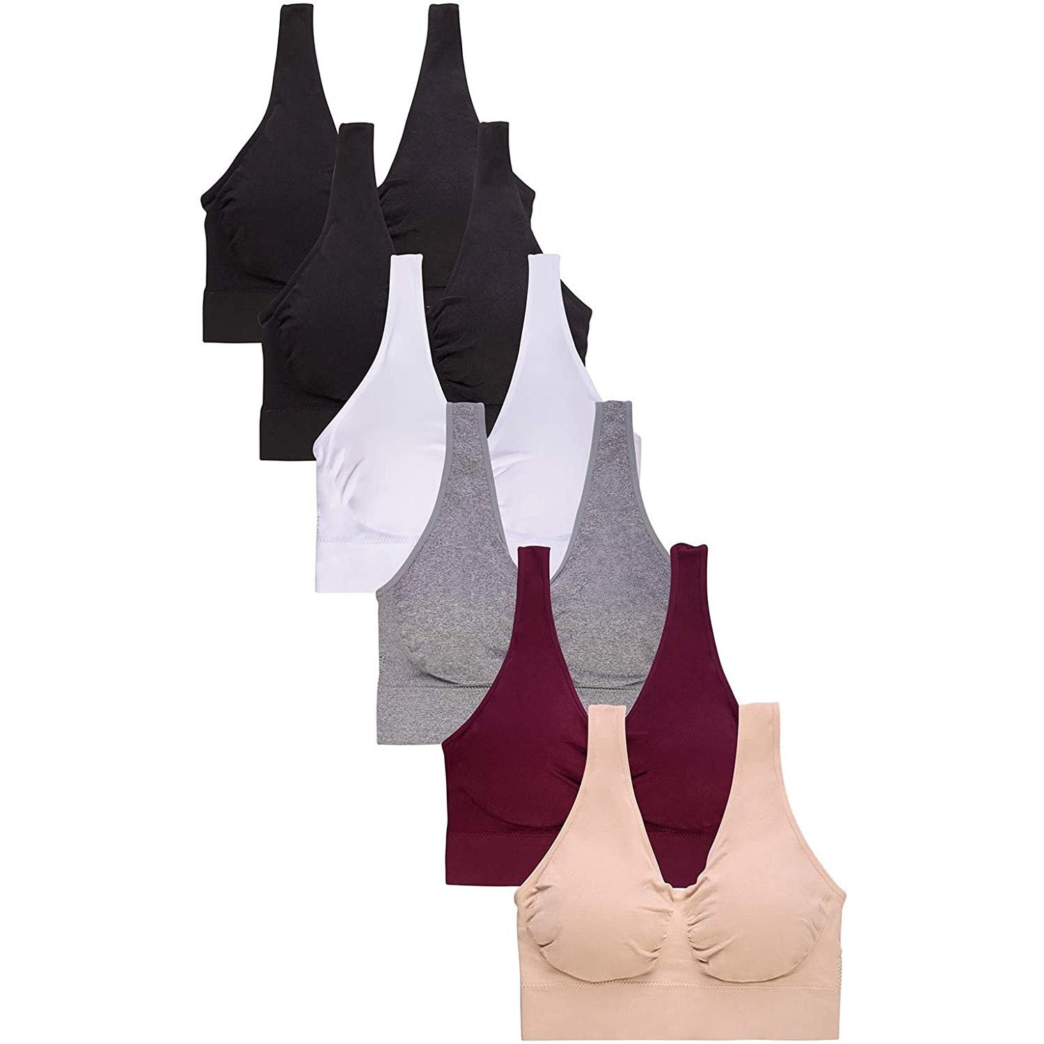 Women's Pack of 6 Padded Double Scoop Comfort Lounging Bras
