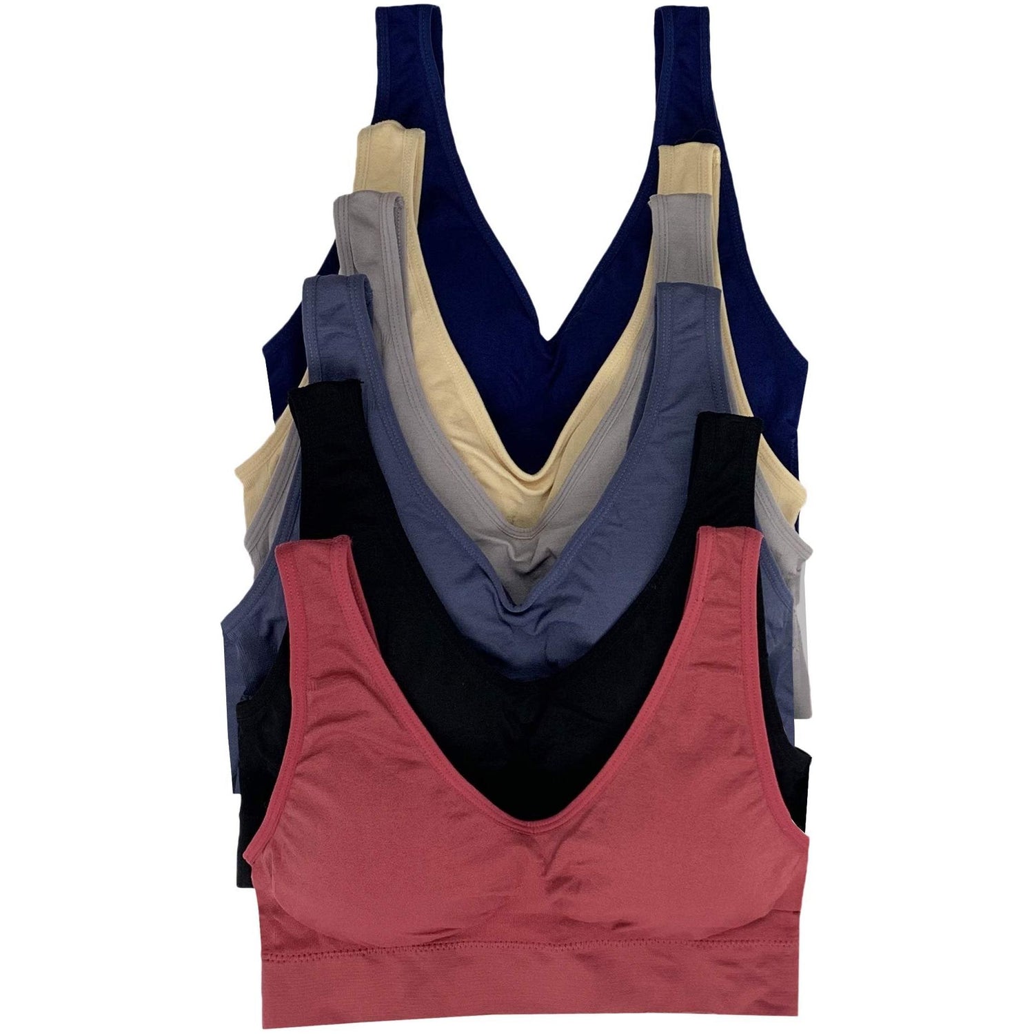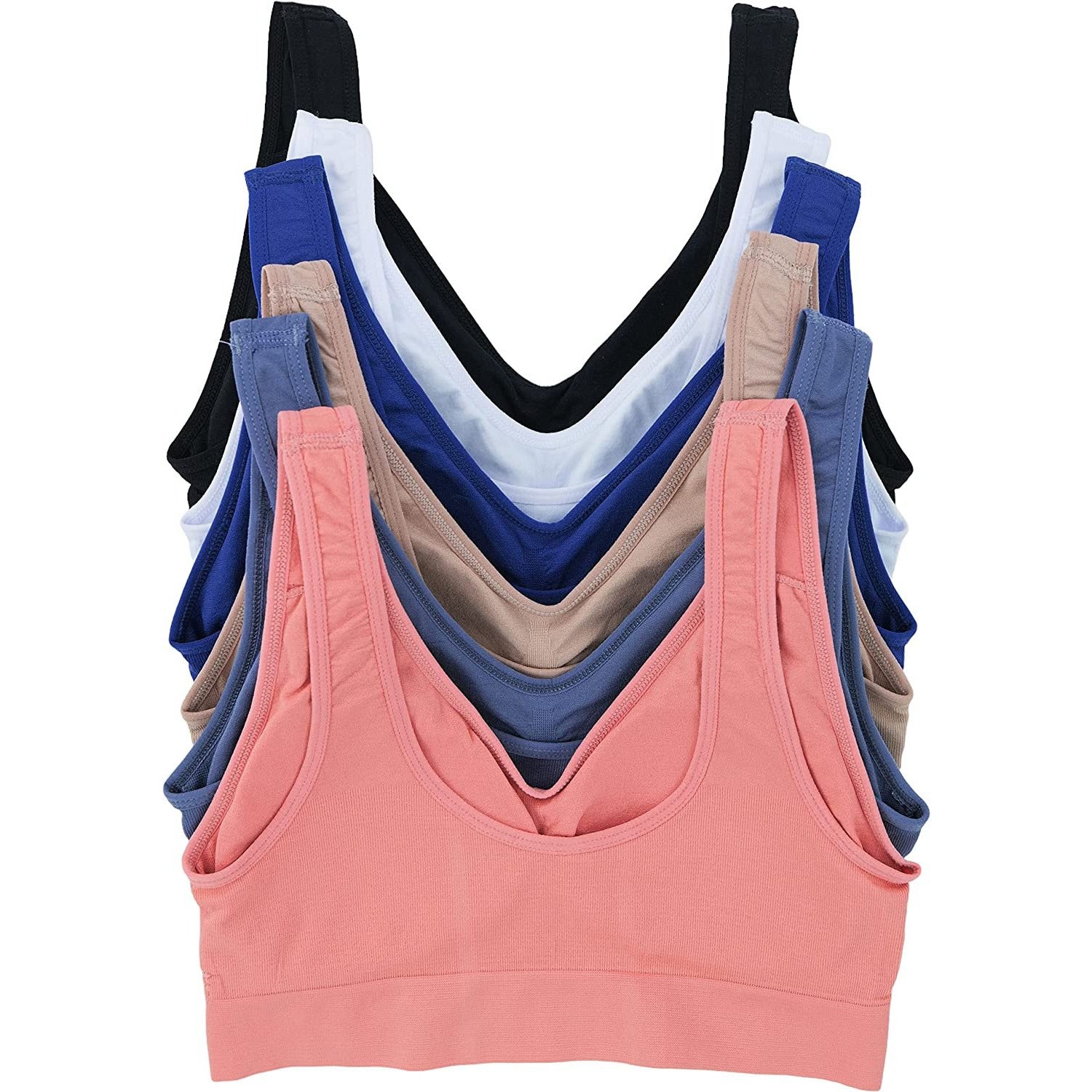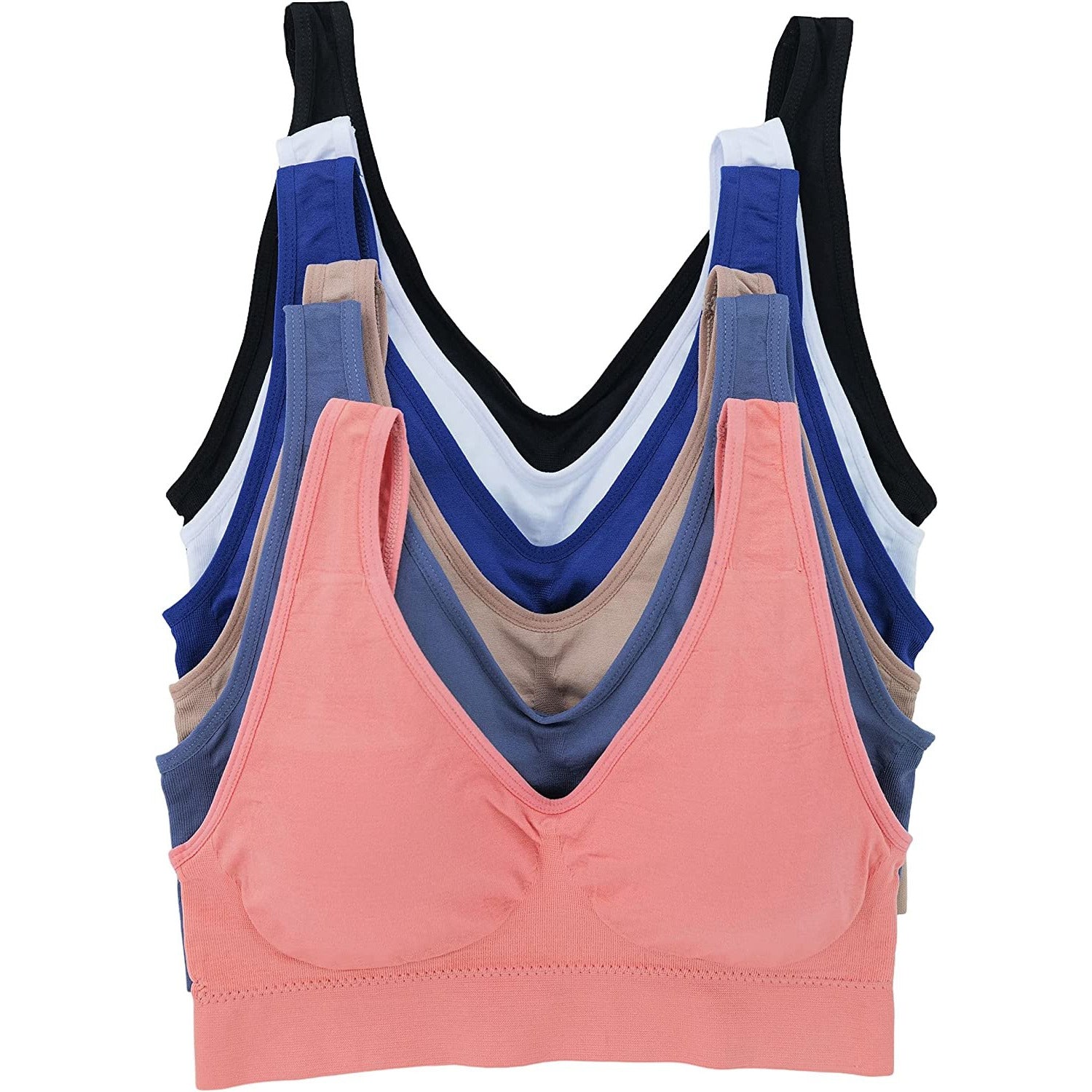 Women's Pack of 6 Padded Double Scoop Comfort Lounging Bras