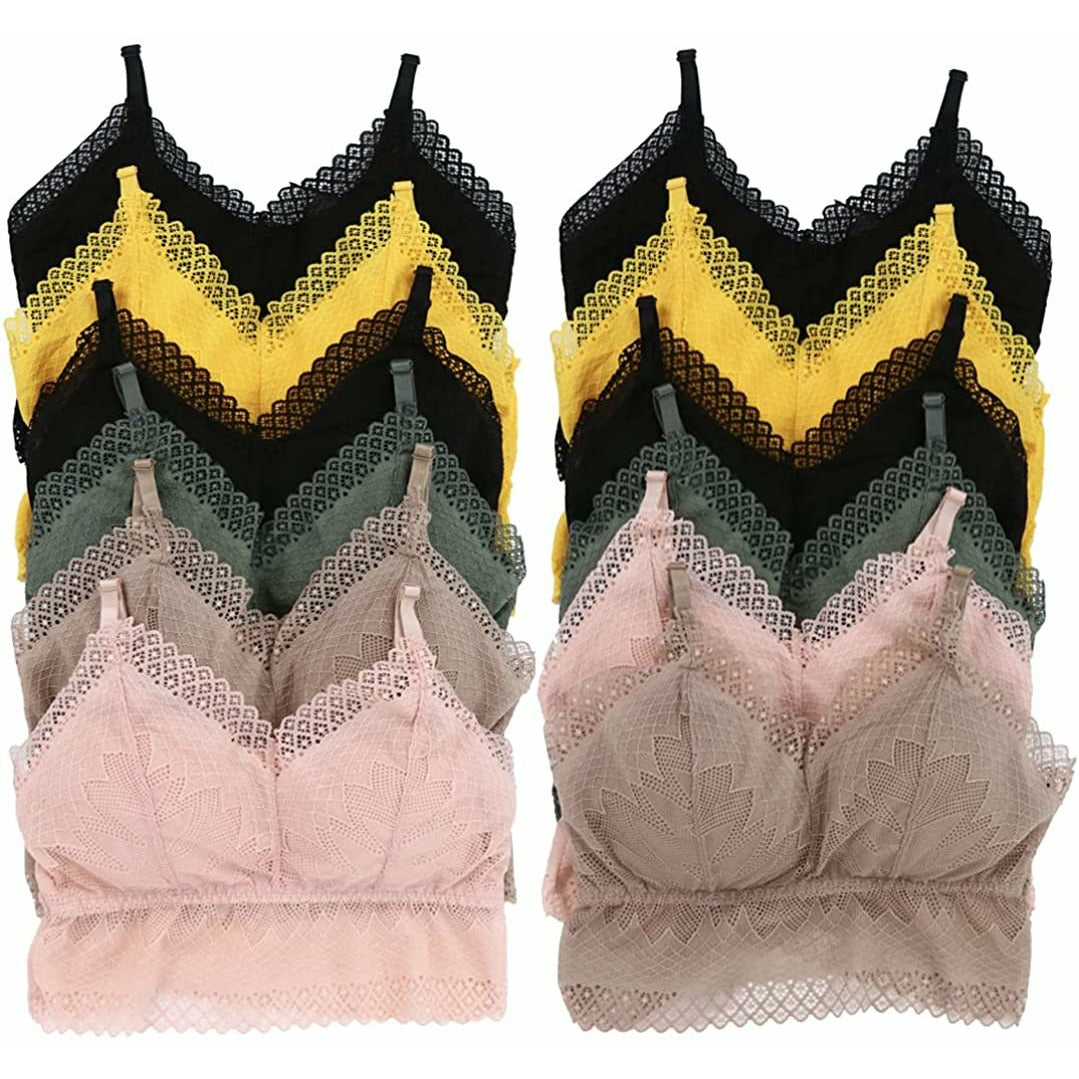 ToBeInStyle Women's Pack of 6 Seamless All Around Lace Trim Padded Bralettes - One Size