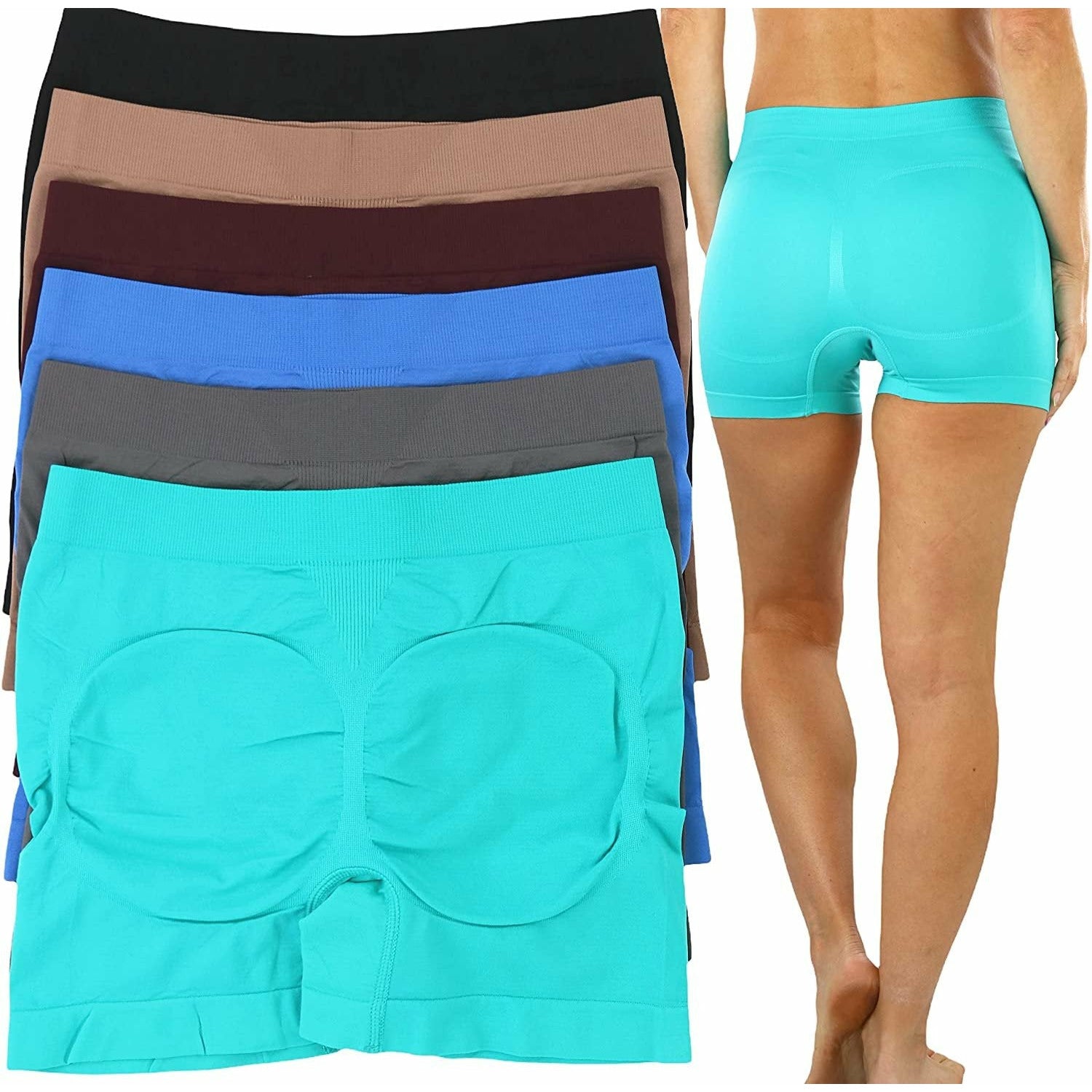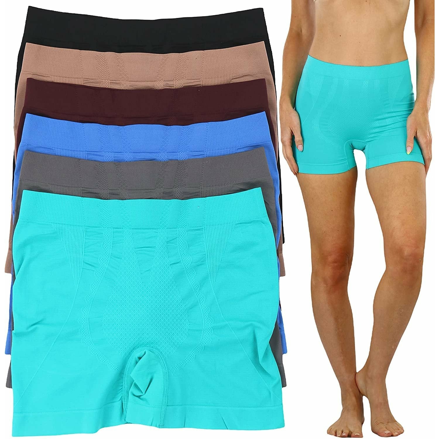 - 💕 INCLUDED ARE: PACK OF 6 Women's Boy Shorts in an assorted colors and prints. High Quality breathable - Nylon/Spandex blend fabric stays cool for dry comfort under skirts, dresses, or slacks Full Boyshort Style Coverage - Soft everyday underwear with stretch legs and elastic band that sits on the hips for a comfy fit and ease of movement
