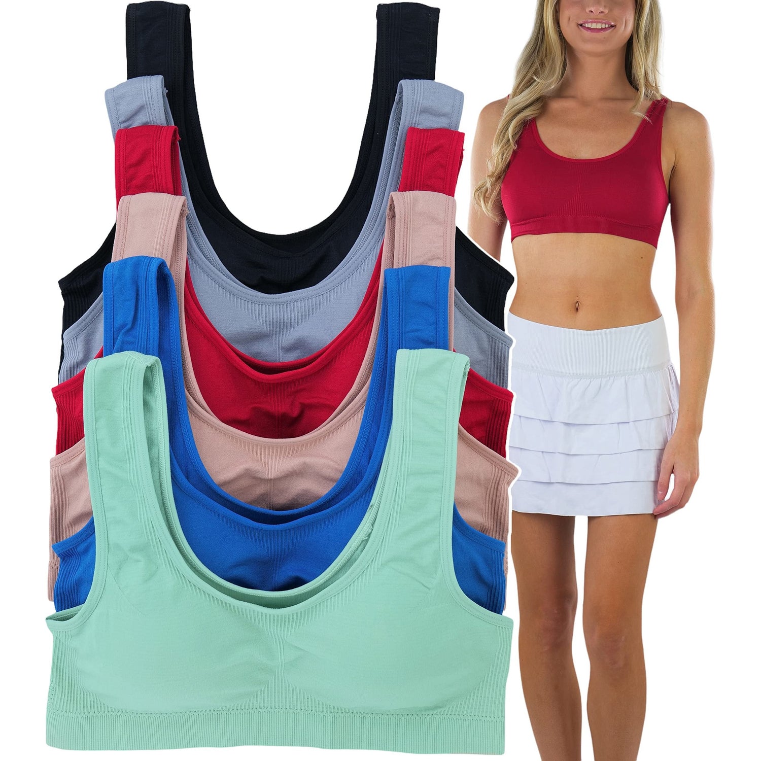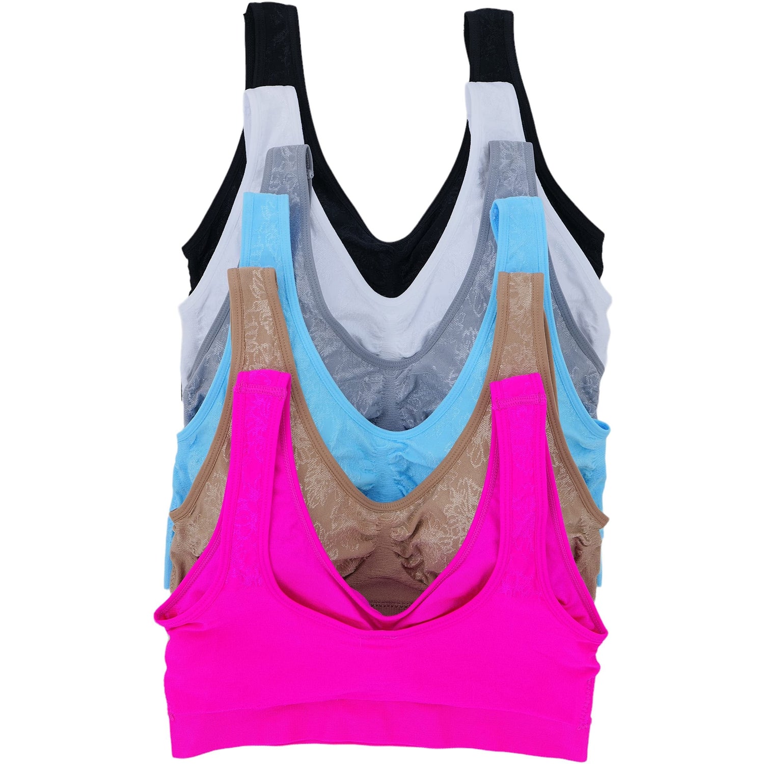 Women's Pack of 6 Padded Double Scoop Comfort Lounging Bras