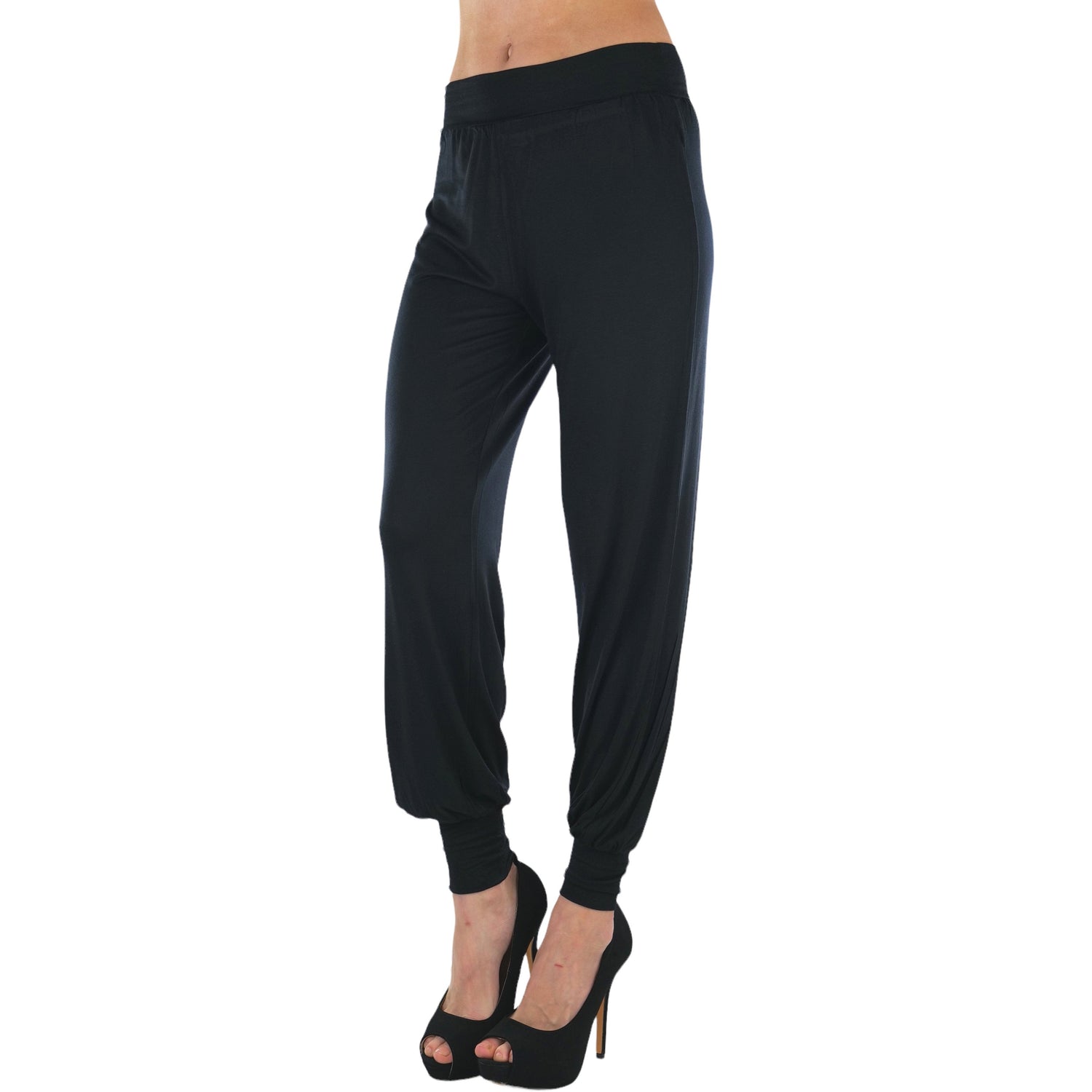 Women's Stretchy Seamless Harem Pants with Cuffed Ankles